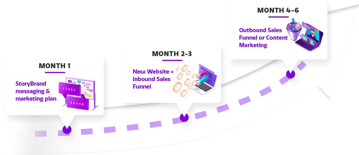 Our 6-month retainer is a strategic investment designed for businesses who are ready for a holistic approach to marketing growth. This is most suitable for businesses with at least $3 million in annual revenue, with a track record of proven products and services.